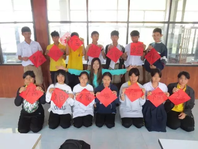 2012级研究生王维超教泰国学生写福字