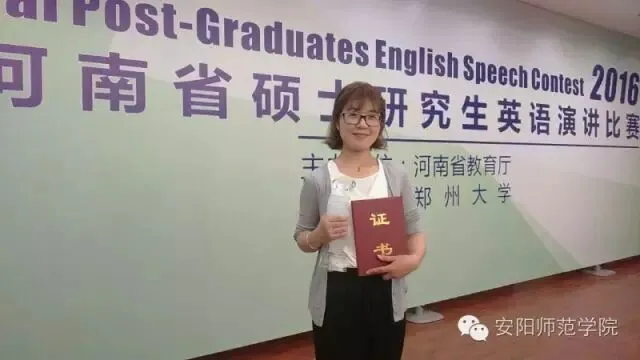 2015级研究生朱俊霞参加河南省硕士英语演讲比赛获得二等奖