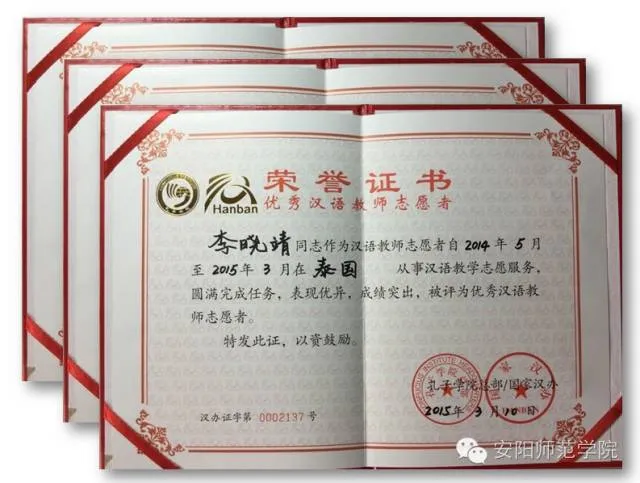 2015级研究生雷鸣、李晓娟、张力珂被国家汉办评为“优秀汉语教师志愿者”