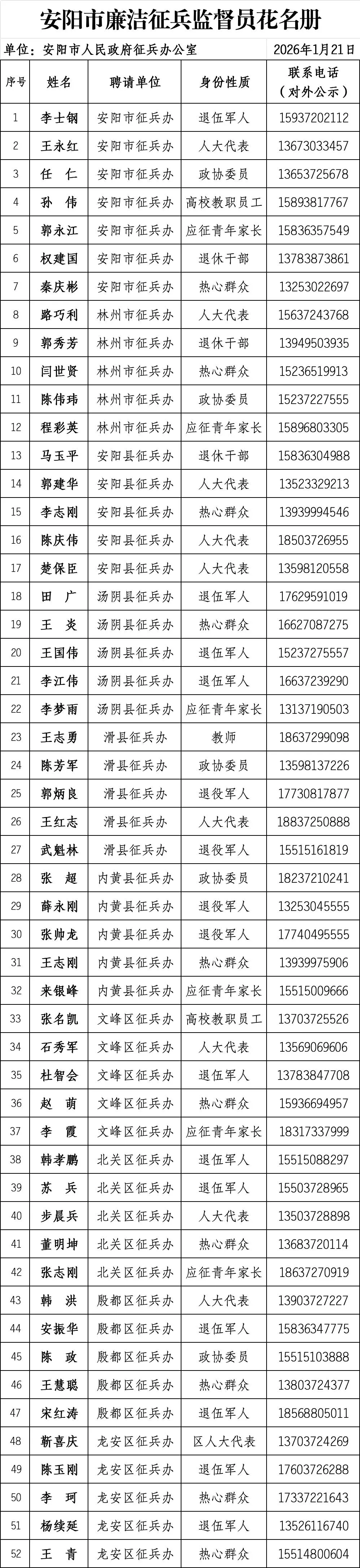 龙安区兵役机关纪委(0372-5070365)、征兵办纪检组(0372-5070365)、举报信箱(18739709098@163.com)。