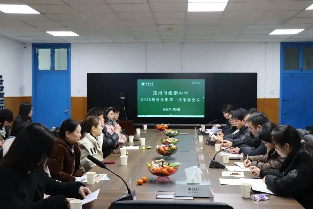 为深化家校协同,凝聚育人共识,2026年1月30日下午,郑州市维纲中学2025年秋学期第二次家委会会议在405会议室顺利召开。校领导班子,各部门负责人及全体家委会成员齐聚一堂,共话学生成长与学校发展。