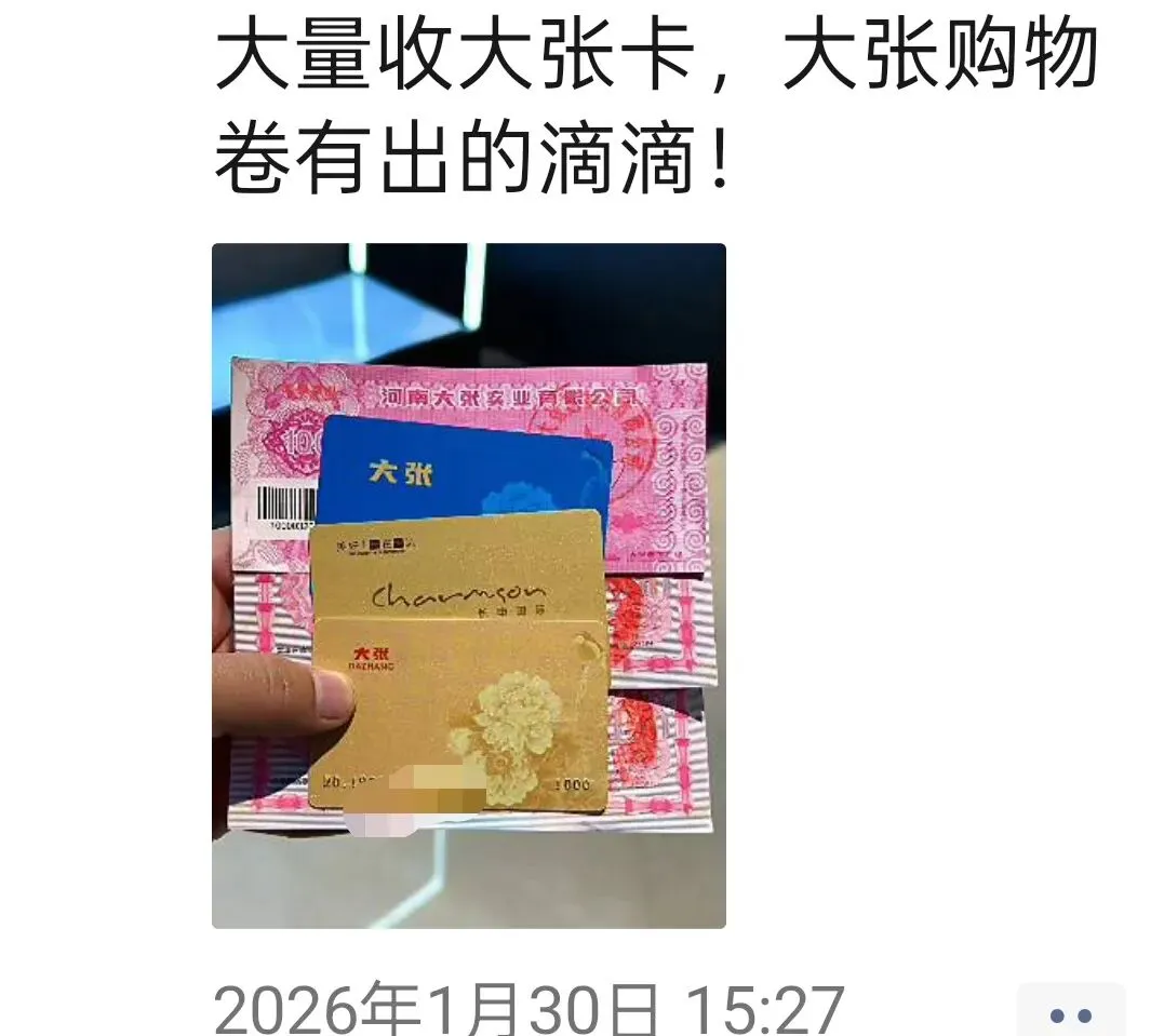 大张的购物卡是市场上的硬通货。收购价远高于易合仓,丹尼斯。九五折收,九七五出。我认识好几个人都干这一买卖。尤其过年时,出货量相当大。