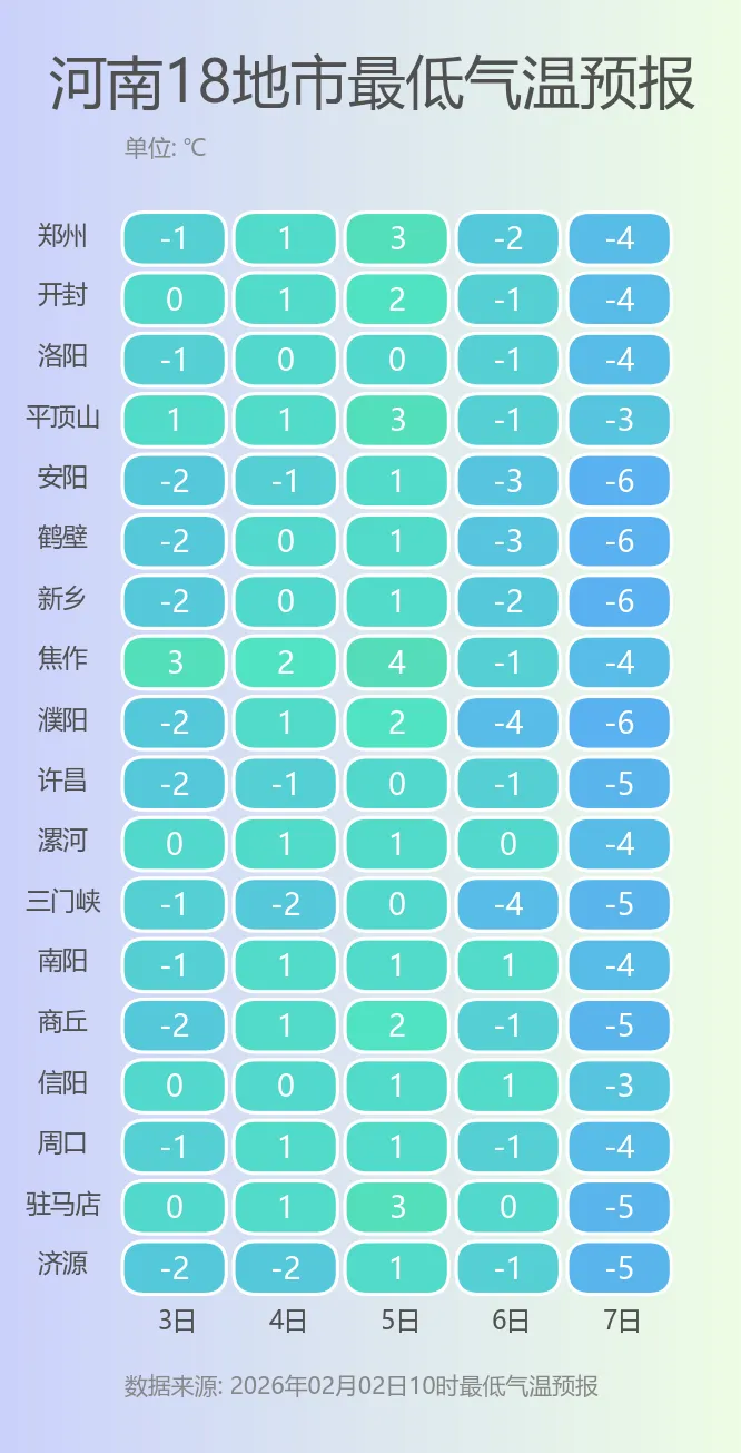 河南省气象台预报:本周前期全省气温明显回升,预计4日大部地区气温将升至近期高点,最高气温将突破15℃。