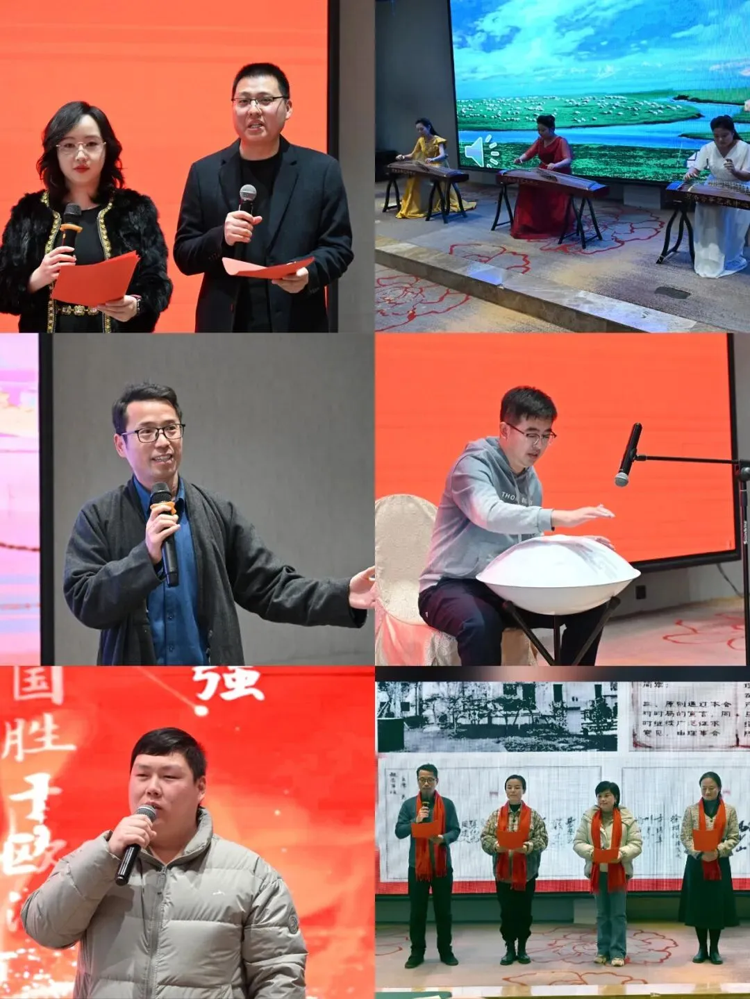 随后开始了新春团拜会,团拜会由支部会员丁祎、葛勇主持。李迅的古筝三重奏《赛马》,琴弦铮铮,旋律激昂,生动展现了万马奔腾、一往无前的壮阔景象,恰如民进人与时代同频共振、奋发有为的精神风貌。赵广鹏的吟诵《诗经·采葛》,在悠扬的韵律中带领大家穿越千年,感受中华传统文化的深厚底蕴与魅力。王业隆带来了一曲空灵悠远的手碟即兴演奏,让大家沉浸其中,身心放松。胡震岳演唱的歌曲《少年中国说》唱出了青年会员的蓬勃朝气与爱国热忱,令人心潮澎湃。何俊茹、李婧、高玉洁、赵广鹏深情并茂的诗朗诵《八秩民进赋》,回顾了中国民主促进会八十载风雨同舟、肝胆相照的光辉历程,抒发了会员继承优良传统、续写时代华章的坚定决心。