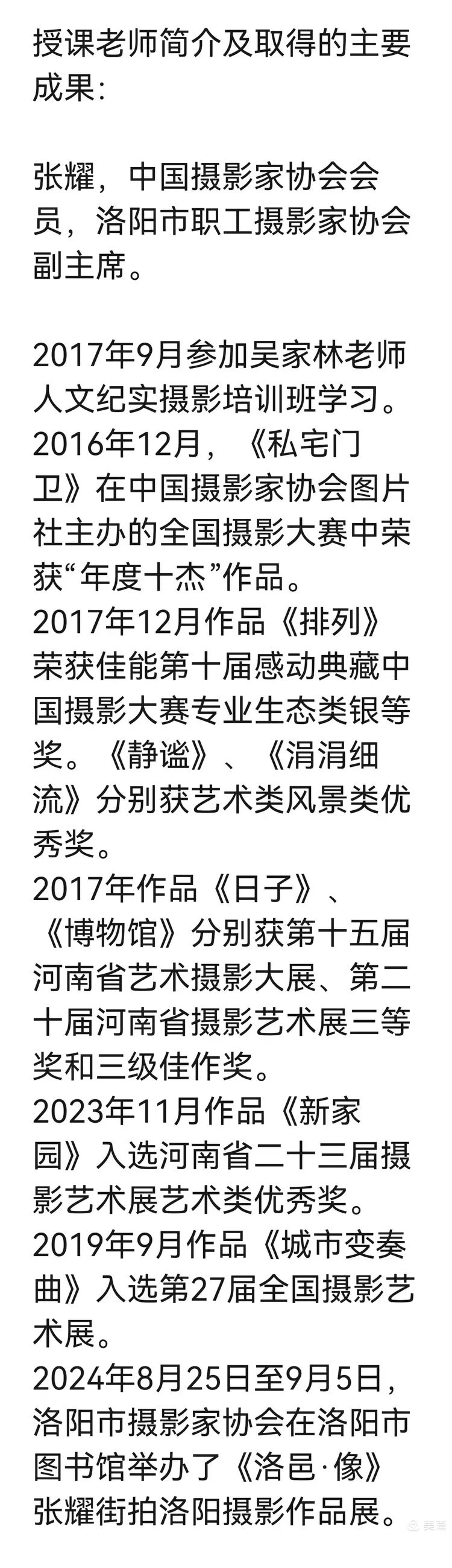 洛阳市摄协手机摄影专委会副主任巴图老师,登台讲话。他热情洋溢并详细地介绍了张耀老师的工作经历,以及在纪实摄影、各种影展中取得的可喜可贺的成就,由此拉开了讲座学习的序幕…