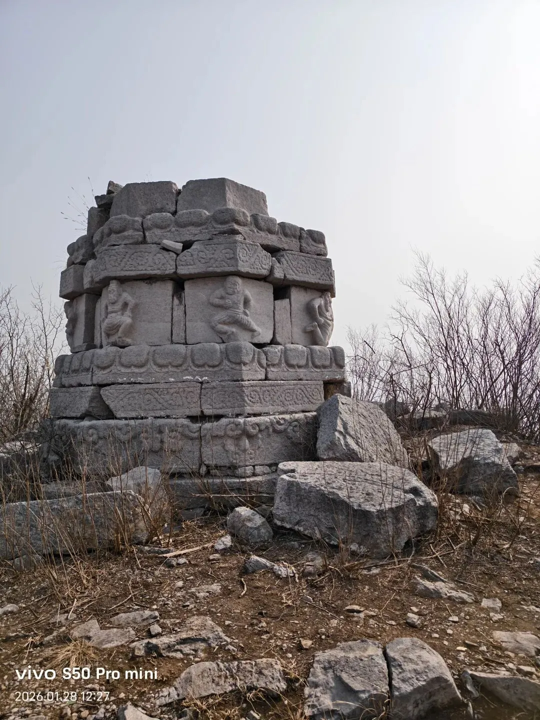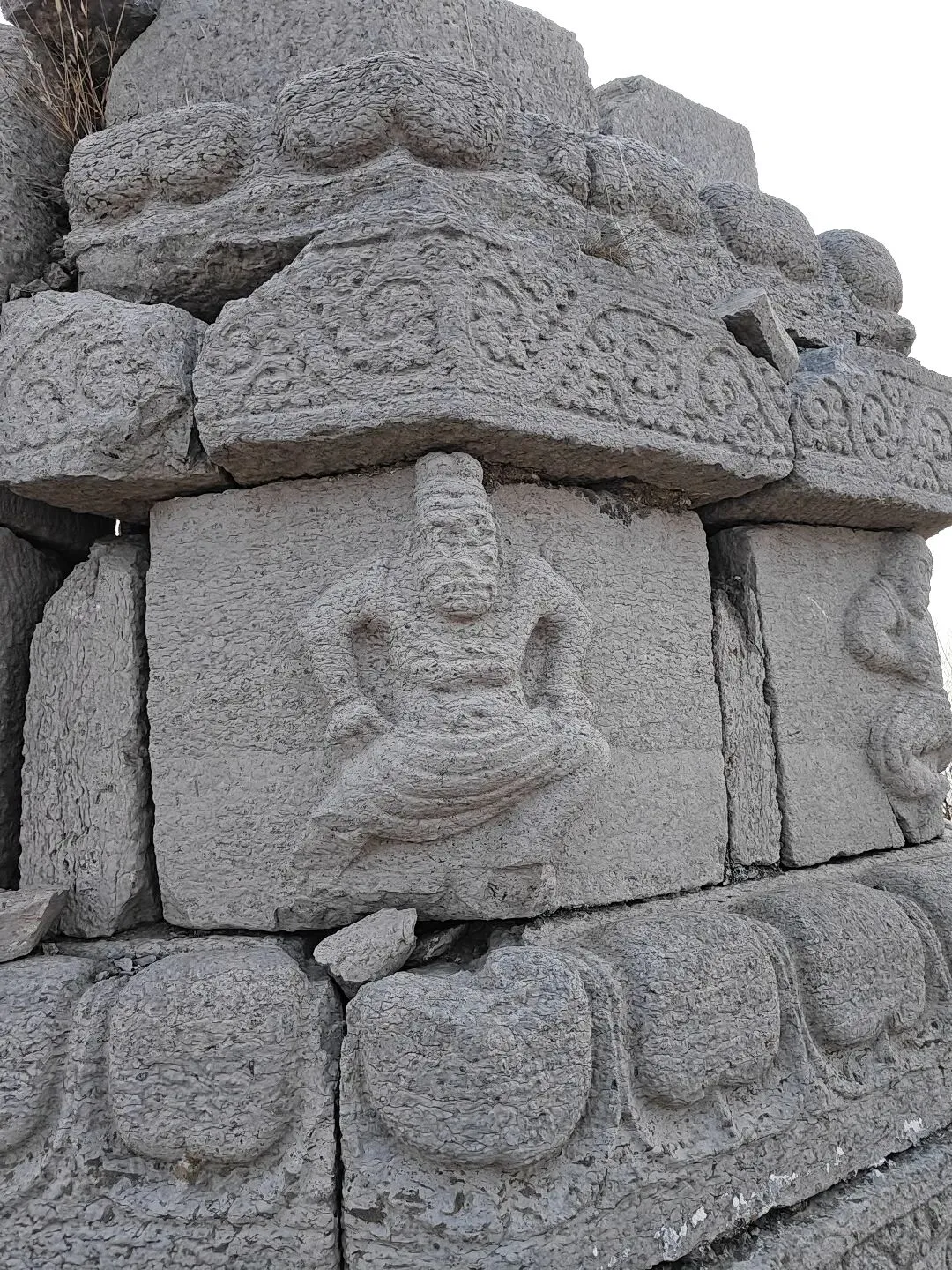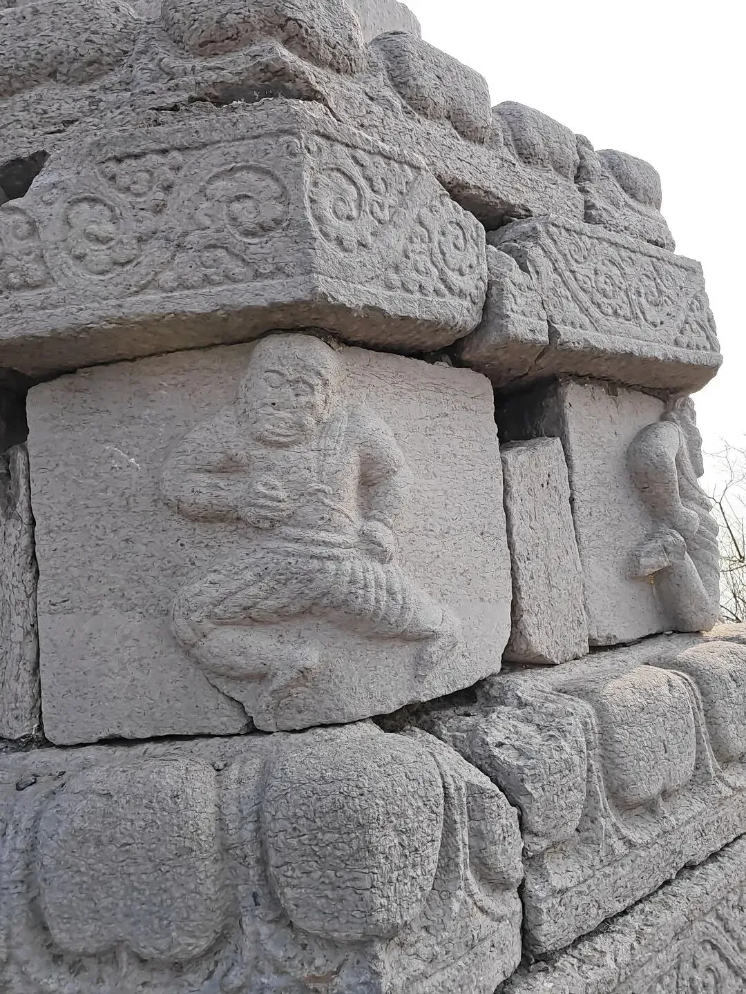 现仅存该塔的基础部分,基座全部用青石条磊砌而成。其平面呈八角形,座身造形为束腰须弥座。在基座的八面石壁上,均刻有人物浮雕图案。