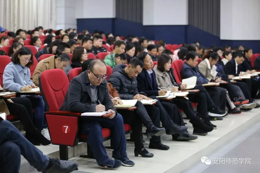 校党委书记纪多辙在主持报告时指出,刘省长的报告立意高远,主题鲜明,内涵丰富,思想深刻,数据详实,重点突出,对于我们深入学习贯彻党的十九届四中全会精神、开展好主题教育、落实高校立德树人根本任务具有很强的理论和现实指导意义。纪多辙要求,全校各级党组织和广大师生要认真学习领会刘省长的报告精神,进一步提高政治站位,增强“四个意识”,坚定“四个自信”,做到“两个维护”,扎实推进“不忘初心、牢记使命”主题教育往深里走、往实里走、往心里走,为实现我校“两高两突破”战略任务,建设教育强省,谱写中原更加出彩的安师篇章而努力奋斗。省委第十二巡回指导组组长、河南农业大学原党委书记程传兴,省委第十二巡回指导组成员、省委组织部干部朱子帅,省政府办公厅六处处长李宝翼,安阳市政府副市长田海涛,市政府副秘书长、办公室主任史景山出席报告会。我校全体校领导、全校中层干部及师生代表300余人聆听报告会。