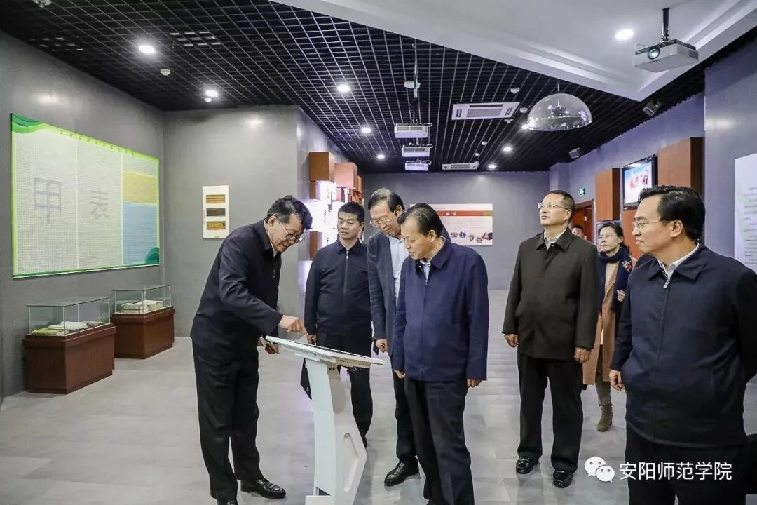报告会结束后,刘伟一行实地查看了甲骨文信息处理教育部重点实验室建设情况,听取了实验室负责人的情况汇报;参观了我校汉字文化体验馆,了解了“汉字的起源与发展”“甲骨文的产生过程”“汉字的书写载体”“汉字与姓氏”“汉字和音乐文化”“汉字与建筑”等内容,对我校近年来的发展成就给予了高度评价,对学校坚持内涵发展,突出地域文化,强化办学特色,服务地方经济和社会发展的建设成效给予了充分肯定。