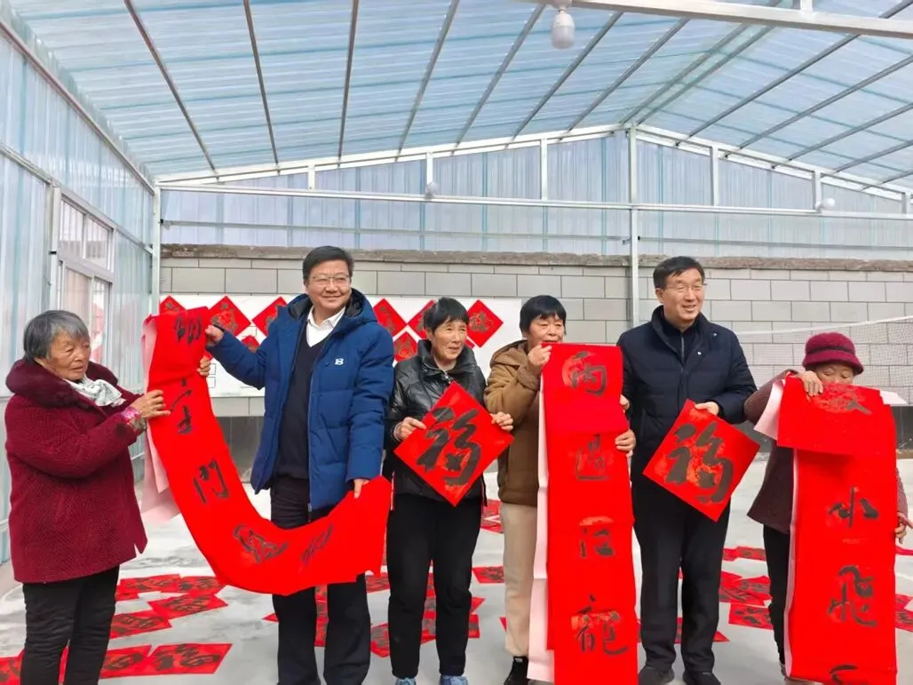赵振涛等支部党员中的书法家现场挥毫,将一幅幅寓意吉祥的春联和“福”字送到村民手中,以笔墨传递新春祝福,让基层群众感受到民革组织的关怀与温暖。