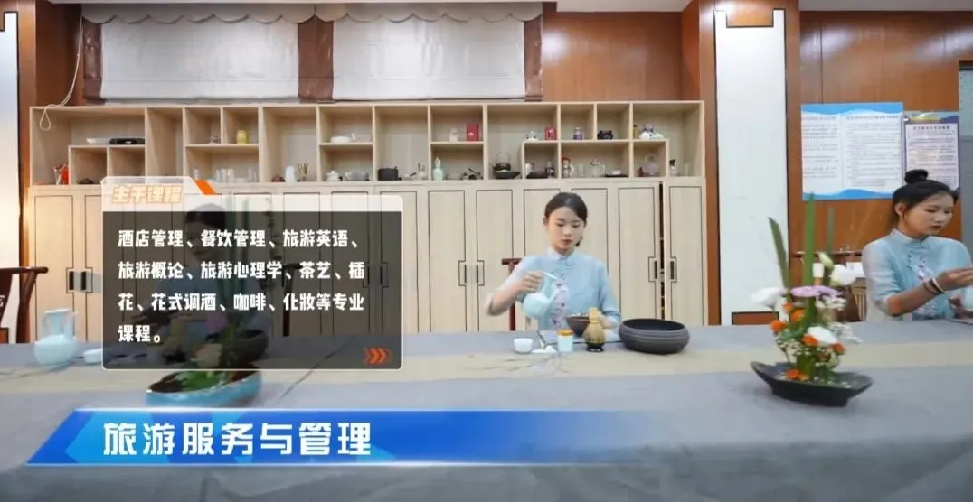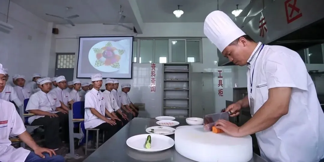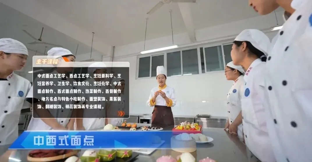 餐饮旅游学院专注培养餐饮服务与旅游管理实战精英,开设有中式烹调、西式烹调、中西式面点、旅游服务与管理四个专业,以强势加强剂双引擎驱动,打造实操、监到职场无缝衔接培养体系。