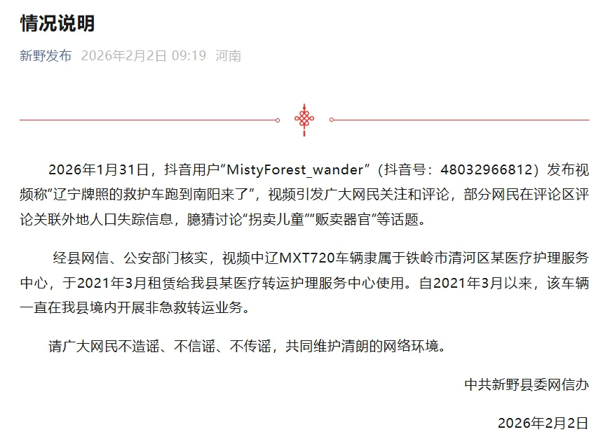 ●2026年春运2月2日拉开帷幕:首日预计全社会跨区域人员流动量超1.8亿人次,同比增长13%。●铁路12306:取消订单3次当日无法购票,次日零点自动恢复,客服2日回应:紧急购票可由亲友账户代购。●商务部等九部门2日印发春节促消费方案:春节9天假期,鼓励各地推出消费红包、补贴等优惠。●市场监管总局2日提示:切勿在无证摊点等非正规渠道购买烟花爆竹。●最高法2日表示:坚决依法从严惩处利用麻精药品实施强奸、抢劫等犯罪。●中国电力企业联合会2日发布报告:2026年我国太阳能发电装机规模将首次超过煤电装机规模。●福州推出新春免费出行活动:2月15日起,连续17天公交地铁免费坐。●2月2日,阿里旗下千问APP宣布推出“春节请客计划”,投入30亿元用于免单消费,将于2月6日上线。●汽车门把手强制性国标日前发布:要求每个车门内、外均配备机械释放把手,明年1月起实施。●江苏盐城一在建大桥2日发生系杆拱梁塌落事故,已致2死3失联,现场救援等工作正在进行。●2026春运火车票现“白菜价”,武汉至温州仅需23.5元,多地现一元“白菜价”车票,比公交还便宜。●近日,最高人民法院依法核准白家犯罪集团案判决,白应苍、杨立强、胡小姜、陈广益4名罪犯被执行死刑。该集团在缅甸果敢设立园区,实施电诈、贩毒、杀人等多项犯罪,涉案资金逾290亿元,造成多名中国公民伤亡。●辽宁一工人在酸菜池中抽烟吐痰,涉事公司近日被罚款5万并责令停产停业,法定代表人杨某被罚款100万元。●致29人死亡、42人受伤,北京长峰医院火灾事故2日一审宣判:被告人汪文杰等19人被判六年六个月至二年不等。●陕西一未满16岁孩子私卖长辈金镯,被金店1.7万元回收,现值3万元左右,家长要求金店退还被拒,市监局和警方介入。●近日,国家卫生健康委办公厅公布第六批国家慢性病综合防控示范区建设评估结果,全国93个县(市、区)入选。其中,河南5地入选,分别是:安阳市安阳县、鹤壁市淇县、濮阳市范县、信阳市新县、周口市淮阳区。●网友发布视频“辽宁牌照的救护车跑到南阳来了”,引发“拐卖儿童”“贩卖器官”讨论。2月2日,新野县委网信办发布情况说明:系本地租赁车辆,开展非急救转运业务。●1月30日凌晨1时50分许,商丘一轿车猛烈撞向红绿灯柱后起火,3人被困车内,路过的代驾小哥王迎宾迎火而上,徒手救出3人。本人事后回应:家里还有妻子和两个孩子,我也后怕。●近日,许昌市人民政府官网刊登《关于许昌市推进经济高质量发展和基层高效能治理先进集体和先进个人拟表彰对象的公示》。许昌市胖东来商贸集团有限公司,入选受表彰“先进集体”名单。●信阳市人大常委会原党组副书记、副主任熊开程严重违纪违法被开除党籍;郑州市郑东新区原党工委副书记、管委会主任、二级巡视员牛瑞华严重违纪违法被开除党籍。●近日,全网最爱发钱企业河南矿山招聘吸引众多求职者网上报名。招工仅1天近300人报名,深夜咨询不断,晚上12点多还有求职者打电话;此次计划招聘63人,涵盖多专业,简历投递一个多月。●近日,平顶山西站一男子过安检时“爆灯”,行李箱内装400万元黄金首饰!为确保安全,民警一路将男子护送至站台。●2月1日,一段拍摄于洛阳马蹄泉旅游度假村内“猴子打架出血”的视频在网络引发关注。度假村2日回应:受伤猴子当晚已隔离治疗!工作人员称“已为它打了消炎针、喂了奶粉,现在状态稳定”。●河南一57岁大爷帮人担保被限高到2099年,130岁才解除,当地法院回应:立即处理并已解除限高。●近日,多名游客发布视频,在河南云台山景区有一大群猕猴“泡温泉养生”,悠闲的姿态被网友调侃道:“真羡慕,进化得刚刚好”。