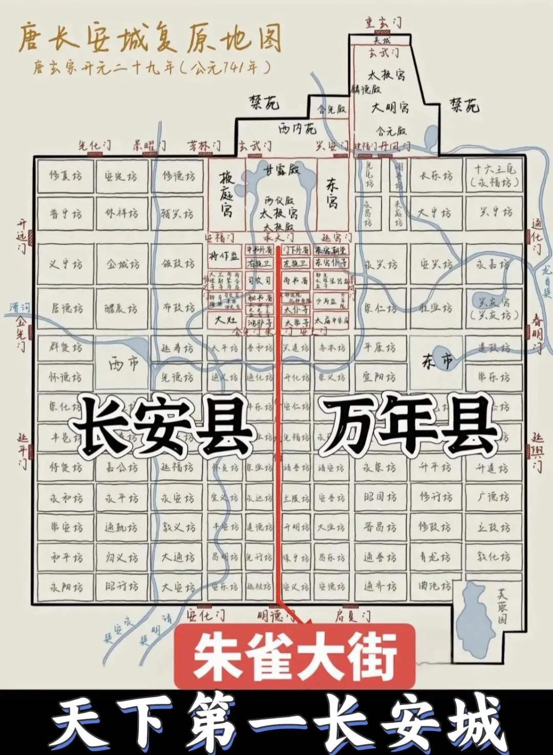 首先是城市定位与核心功能方面,长安城是大唐的京师正都,也就是唐朝的“正首都”,毕竟大唐中央王朝的政治中枢如皇宫、三省六部皆设于长安城,也是整个东亚的文化与国际交流中心,世界各国的使节、留学生、胡商都聚集于长安城,是整个大唐王朝的“政治脸面”,规划上重礼制、显威仪。