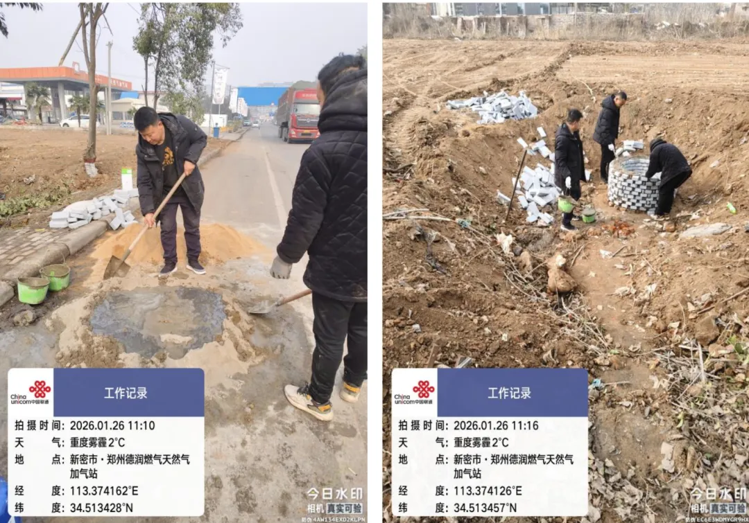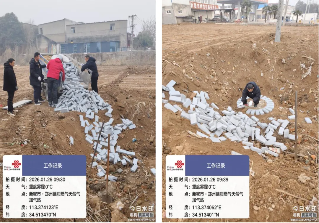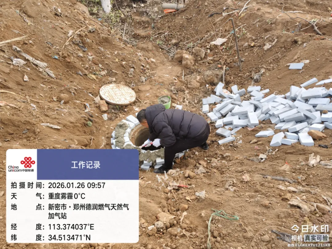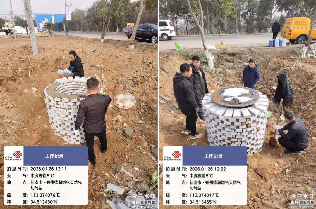 郑州联通讯(新密分公司:石全伟、杨书伟)2026年1月26日,伴随新密市城关镇德润燃气公司扩建工程的推进,郑州联通新密分公司一处位于施工现场的通信管道人井因路面标高调整,需整体提升1.7米。面对这项看似常规的配套施工任务,郑州联通新密分公司管线网格没有简单选择外包,而是由5名技术骨干组成突击队,在重度雾霾的低温天气中自主完成砌井提升作业,以专业技艺和奉献精神,不仅保障了工程进度,更直接节约施工成本近3000元,展现了新时代联通人“能打硬仗、善打巧仗”的职业风貌。