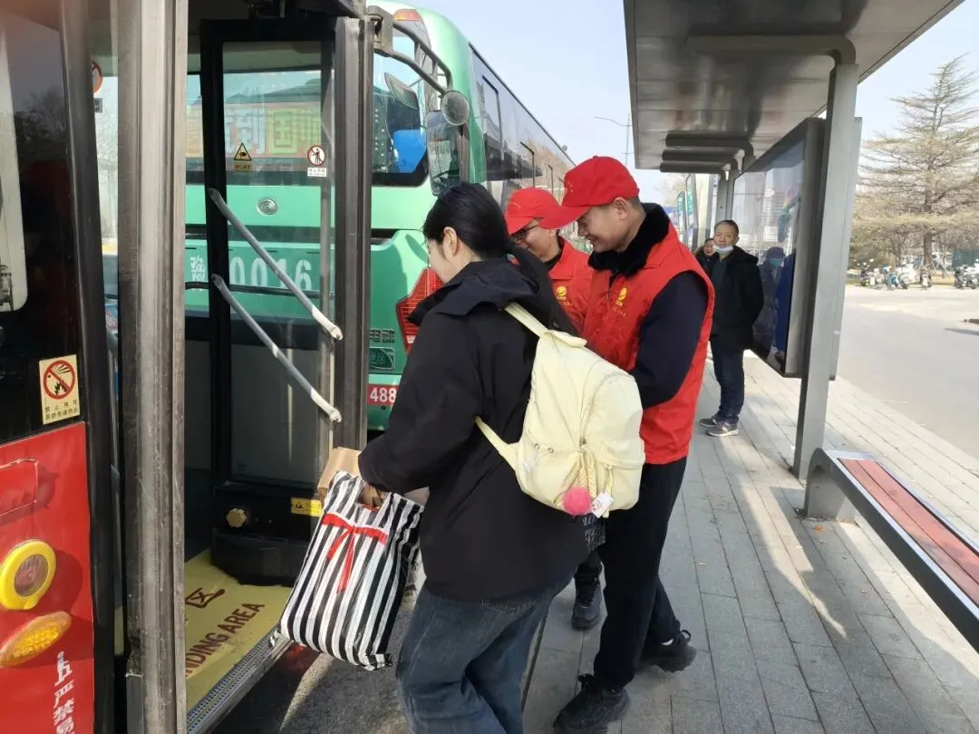 “师傅,去火车站坐哪路车?大概需要多久?”面对旅客频繁的询问,志愿者们化身“活地图”,逐一细致解答,清晰告知乘车位置、发车间隔和换乘信息。在郑州市文化路、花园路等客流量较大的公交站点,志愿者们有序引导乘客排队候车、文明乘车,提醒大家保管好贵重物品,提供从引导进站、协助候车到护送乘车的“点对点”全程帮扶,让特殊旅客的回家路更安心、更顺畅。