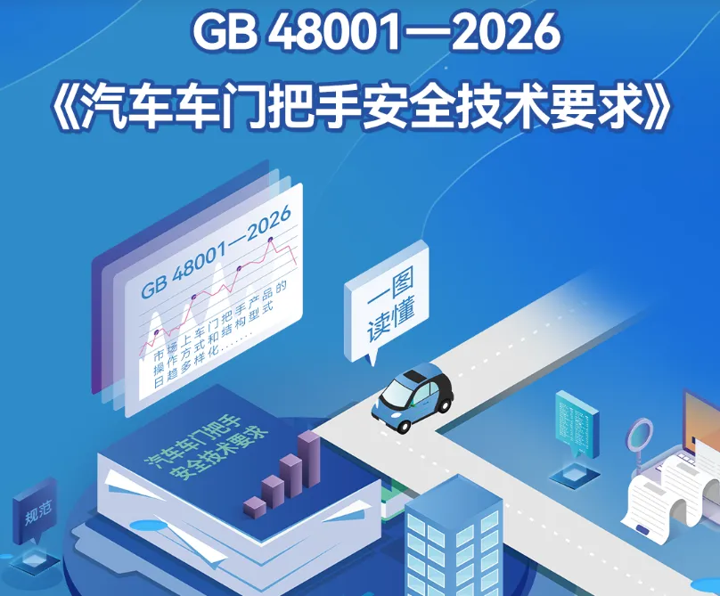 ⭐2月2日,据工信微报消息,工业和信息化部组织制定的强制性国家标准《汽车车门把手安全技术要求》(GB 48001-2026)日前由国家市场监督管理总局、国家标准化管理委员会批准发布,将于2027年1月1日起开始实施。详情>>
