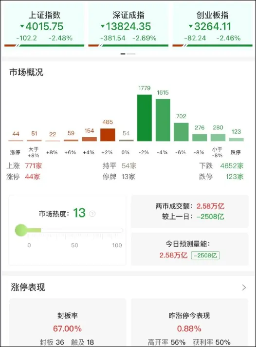 ⭐A股百股跌停 超4000股下跌