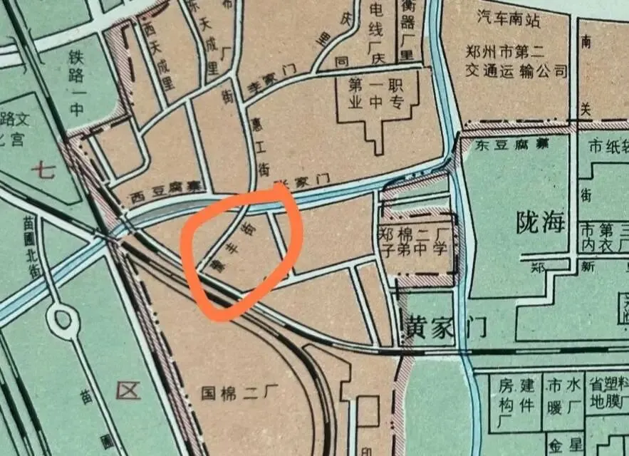 豫丰街的得名,正是源于这座工厂的兴衰。民国初年,随着豫丰纱厂的建设和发展,在工厂门口逐渐形成街道,得名"豫丰街"。这条南北走向的街道南起原国棉二厂,北至熊耳河与惠工街相通。在国棉二厂鼎盛时期,街道两侧布满了医院、浴池、理发店、粮店、菜店、学校等生活设施,形成热闹非凡的工人生活区。国棉二厂门牌就是豫丰街1号,后来原厂区改造的锦艺新时代社区同样沿用此门牌,而路东那座危楼下却立着惠工街的路牌——这错位的标识,恰是城市变迁的生动注脚。