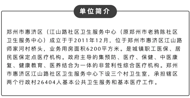 面试地点:郑州惠济区师南路蓝天幼儿园西北侧 郑州市惠济区江山路社区卫生服务中心
