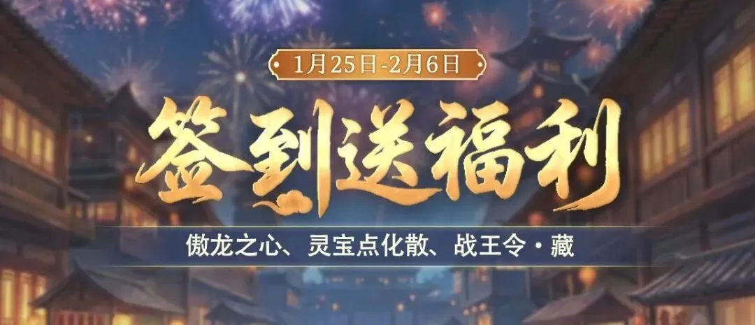 签到送福利,登录即得傲龙之心、灵宝点化散、灵宝滋养丹!