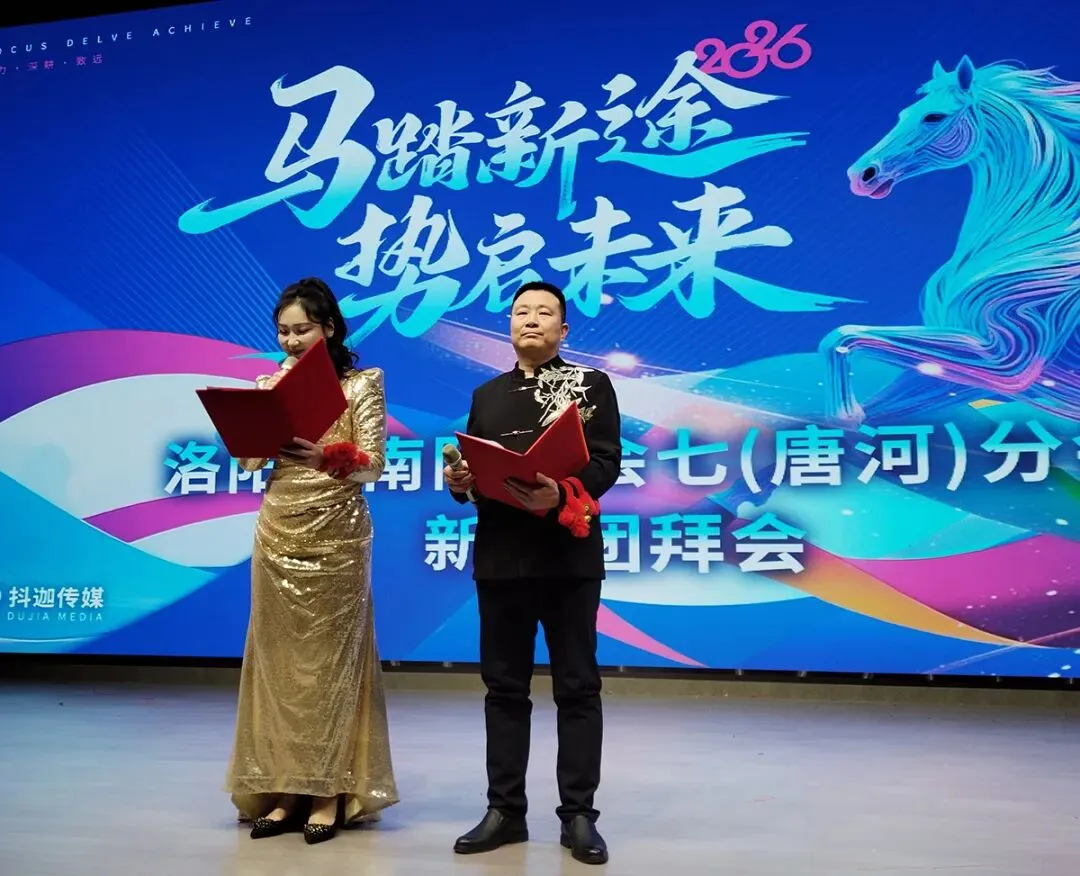 “我宣誓:我们抱团取暖,携手并肩;我们实干拼搏,铸就辉煌;我们反哺家乡,共促发展;我们担当有力,彰显本色。”2月1日,洛阳市南阳商会七分会(唐河)2026新春团拜会现场,分会会长张帅英带领全体服务团队成员,右手握拳举至耳畔,面向全体与会人员庄严宣誓。铿锵誓言回荡在会场,既是对初心使命的坚守传承,更是对未来发展的郑重宣言。
