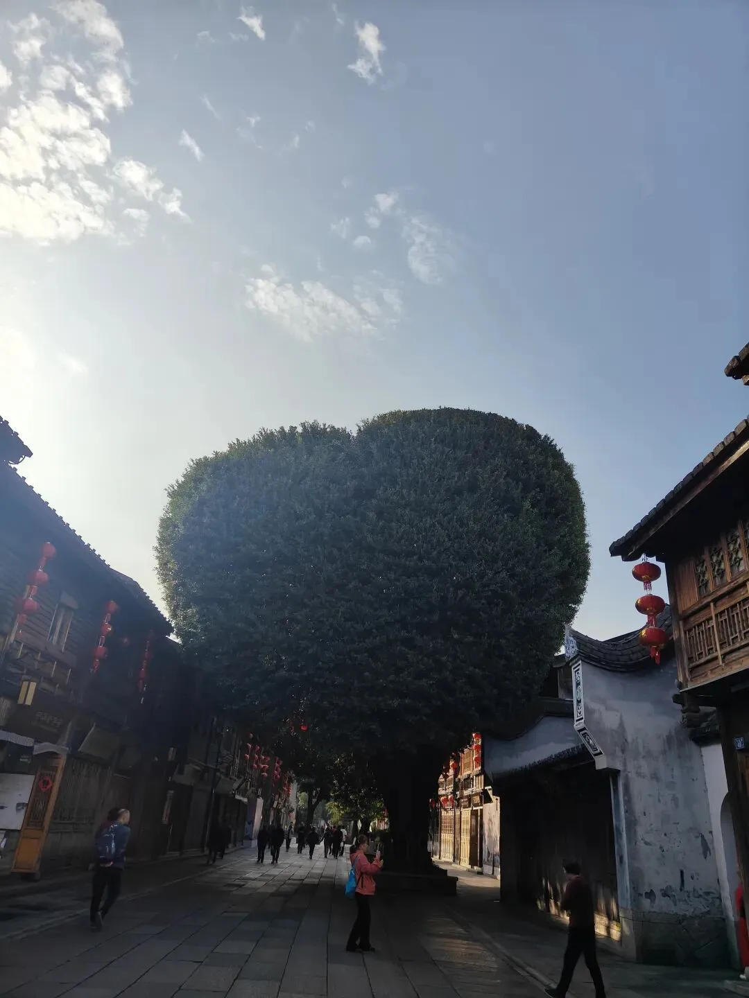 除了厚重的历史,巷子里也藏着雅致的艺术空间。偶然走进一家以传统大漆为主题的艺术馆,暗红色的展厅里,陈列着从杯盏到屏风的精美漆器。一件名叫“岁月流金”的脱胎漆器,在灯光下流转着温润深邃的光泽,古老手艺和现代审美在此交融,让人驻足良久。而转角遇见的那棵天然长成心形的“爱心树”,则像大自然送给古巷的温柔礼物,游人看见都会会心一笑,举起手机留下它的样子。