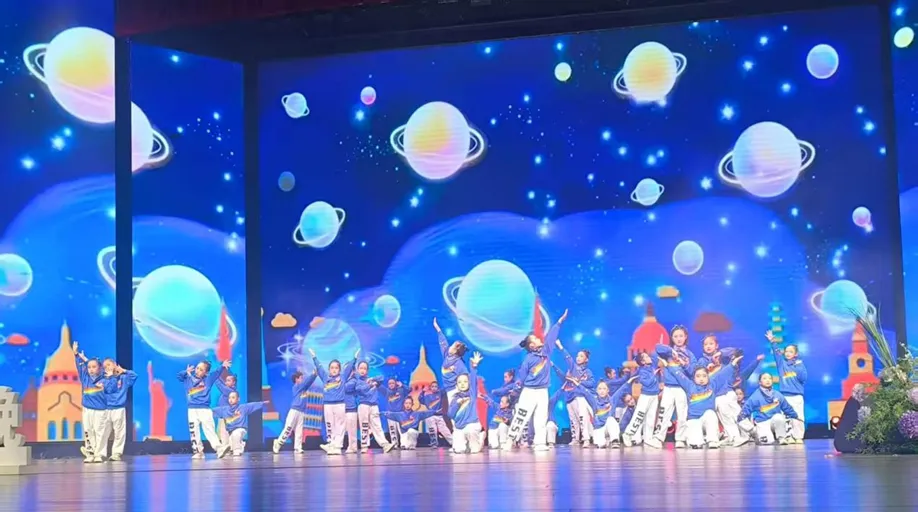 一年级孩子带来的《致未来》,以纯真视角、生动演绎诉说对未来的美好憧憬,每一个眼神、每一句台词都饱含真挚情感;二年级学子的《少年航天梦》,则以灵动舞姿、整齐动作,将少年儿童追逐航天梦想、心系家国远方的热血与憧憬展现得淋漓尽致。