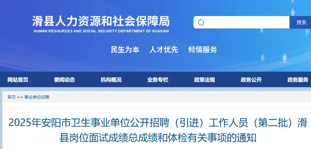 | 2025 年安阳市卫生事业单位公开招聘(引进)工作人员(第二批)滑县岗位面试成绩总成绩和体检有关事项的通知 |
