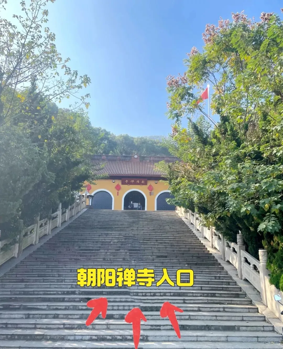 从朝阳禅寺走进去,到大雄宝殿以后右转往山上走,一路有明确的标识,而且都是台阶路,大概走个十来分钟,就能看到蝙蝠洞,蝙蝠洞不大,黑洞洞的,我们就没过去玩。