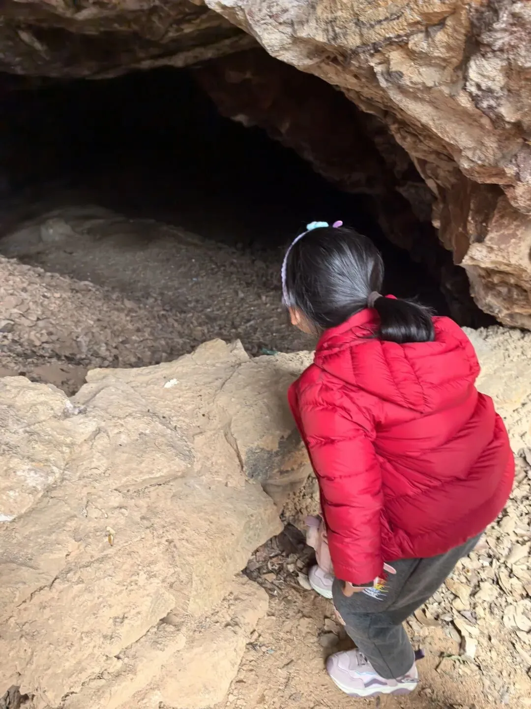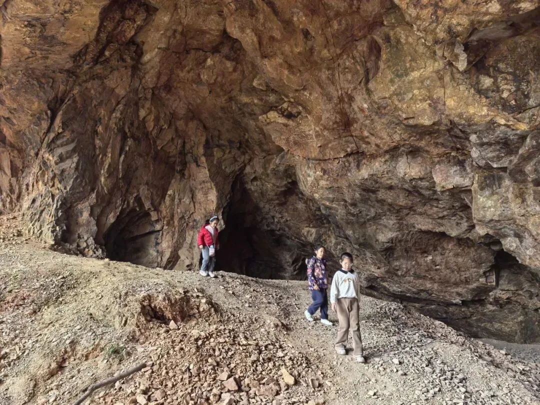 再往前不远,就是扁洞,看介绍,这是以前采矿留下的洞,我们走进去看了看。里面都是碎石,虽然可以深入,但是看着感觉路不是很好走,我们在洞口犹豫了一下,决定不下去了,继续往上走。