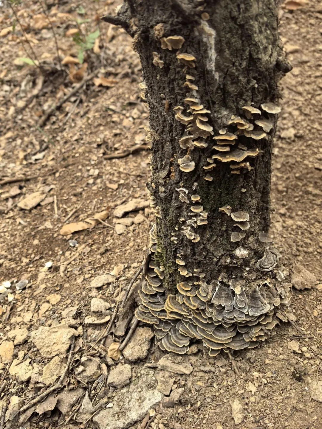 往上走不远就可以看到安阳山的石碑,我们绕过石碑,继续往前,因为不想原路返回,看清楚大体方位之后,决定挑战野路抄个近路下山。所以呢?路是真的不咋好走,不过呢,也不算难走,就是会遇到倒下的大树,需要翻一下,会遇到松滑的树叶,需要小心点。对了,我们还看到了原生态的“木耳”。是的,长在枯死树木上的小木耳们。这,也算是意外之喜了。横穿山林,迅速下山以后,我们穿过了一片别墅区,没什么人入住,显得冷冷清清,然后呢,就沿着马路,走到了火山地质文化厅。来都来了,山也爬了,那就一起看看火山是怎么形成的吧。