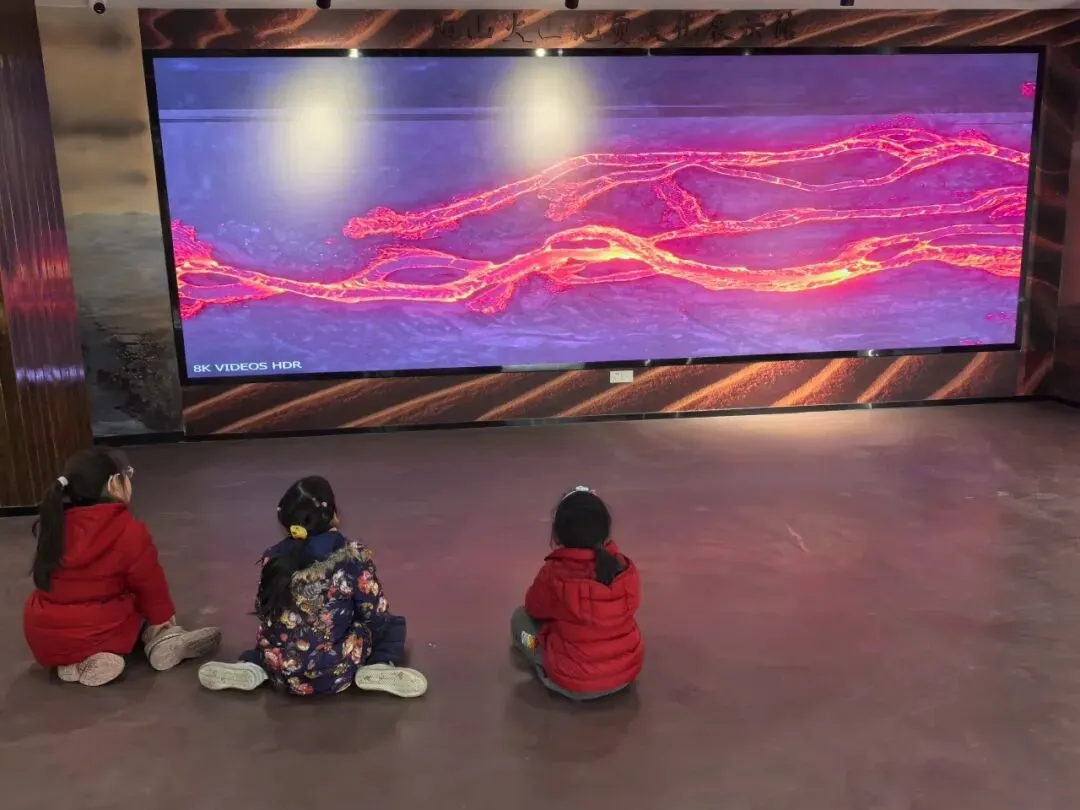 文化展厅不大,介绍了火山的类型,全球著名火山的分部,也有视频资料展示火山喷发的样子。溜达一圈,涨涨知识,仨小只看火山喷发,目不转睛。从文化展厅出来,也到午饭时间啦,那就约个饭啦。