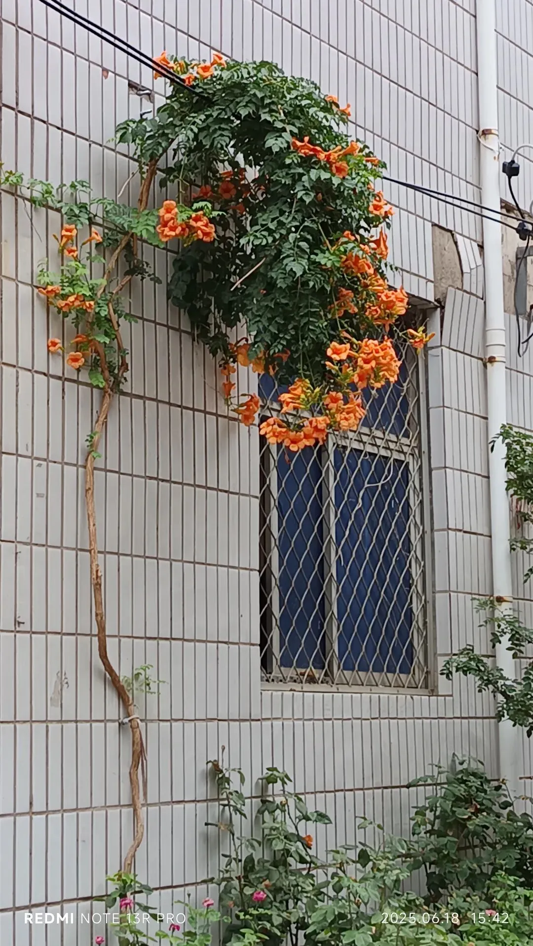 夏天来的时候,凌霄花开着,街上已经没有几户人家居住了,凌霄花变成了主人。