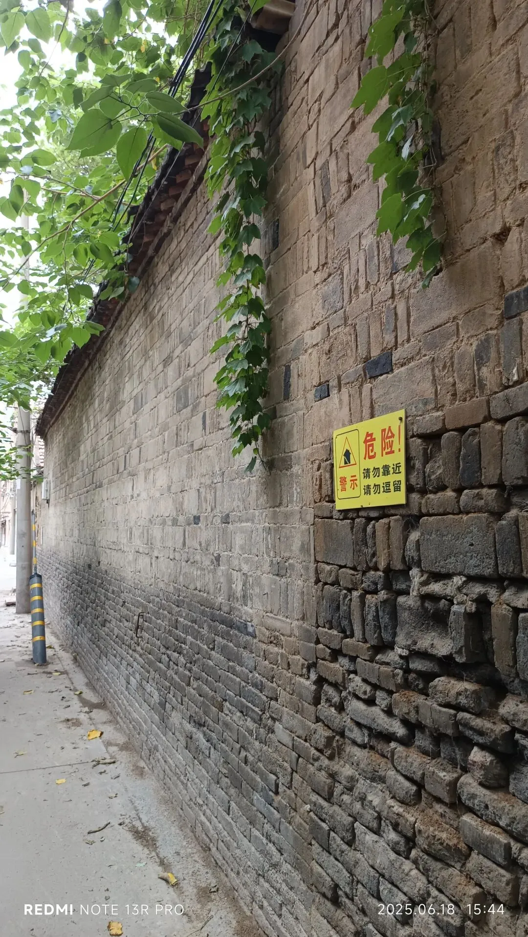 大门也是常年紧闭,外面的院墙,也能看出岁月侵蚀着痕迹,挂着危险提示牌。院中的爬山虎顺着墙爬了出来,让整条街略显生机。这个院落没有找到更多的记录和信息,非常遗憾,而且这次过去,这条街也被铁皮封闭了起来,估计是在改造或者怕围墙倒塌吧?