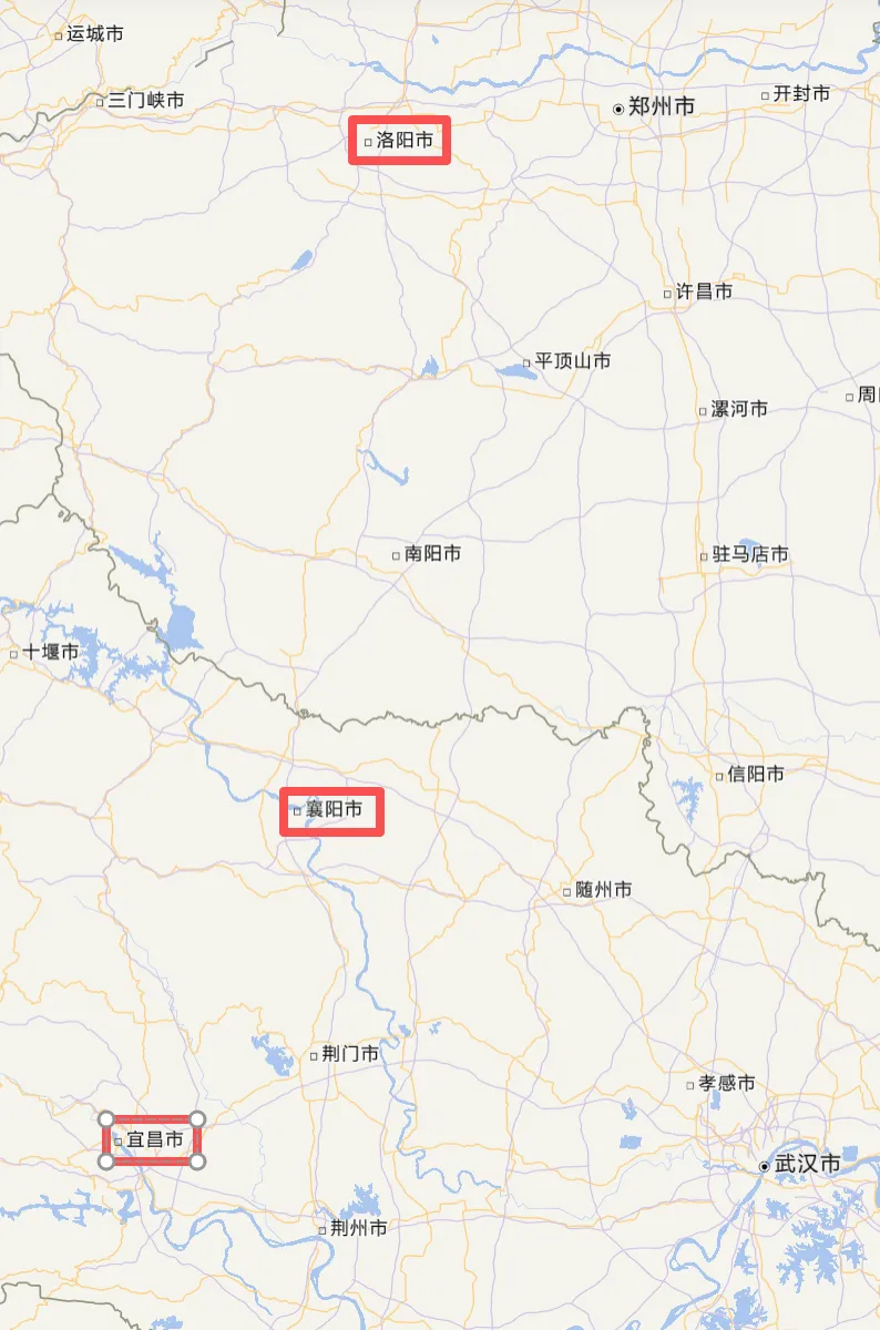 宜昌、襄阳、洛阳位置关系图(图源@天地图)▼