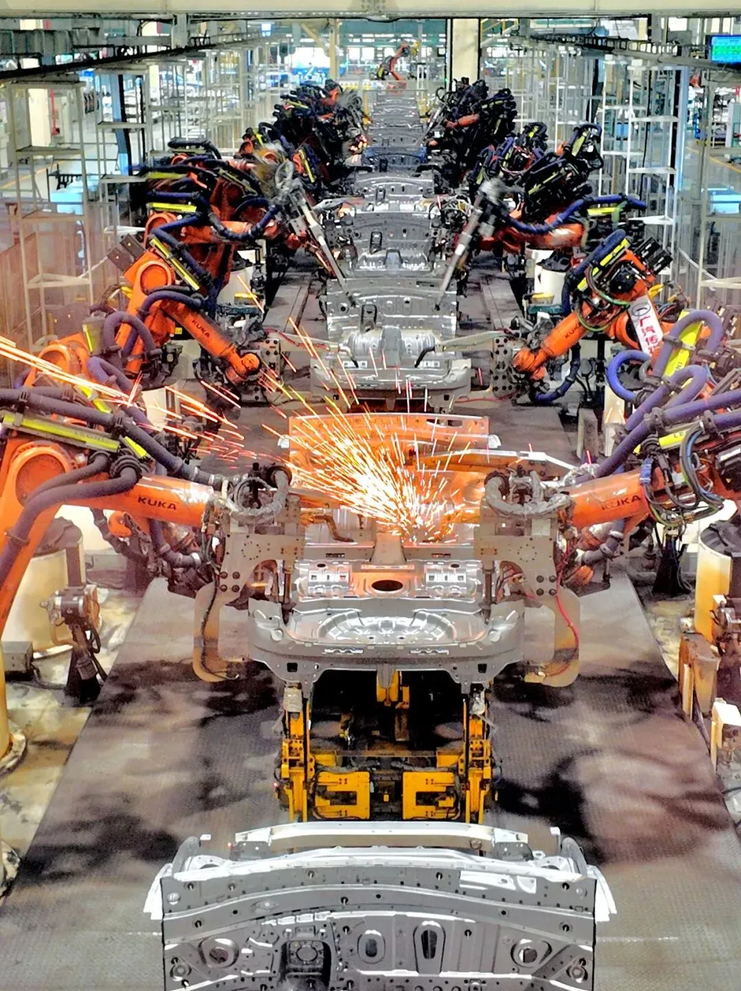 工业机器人在广汽传祺宜昌工厂生产汽车(图源@摄图网)▼