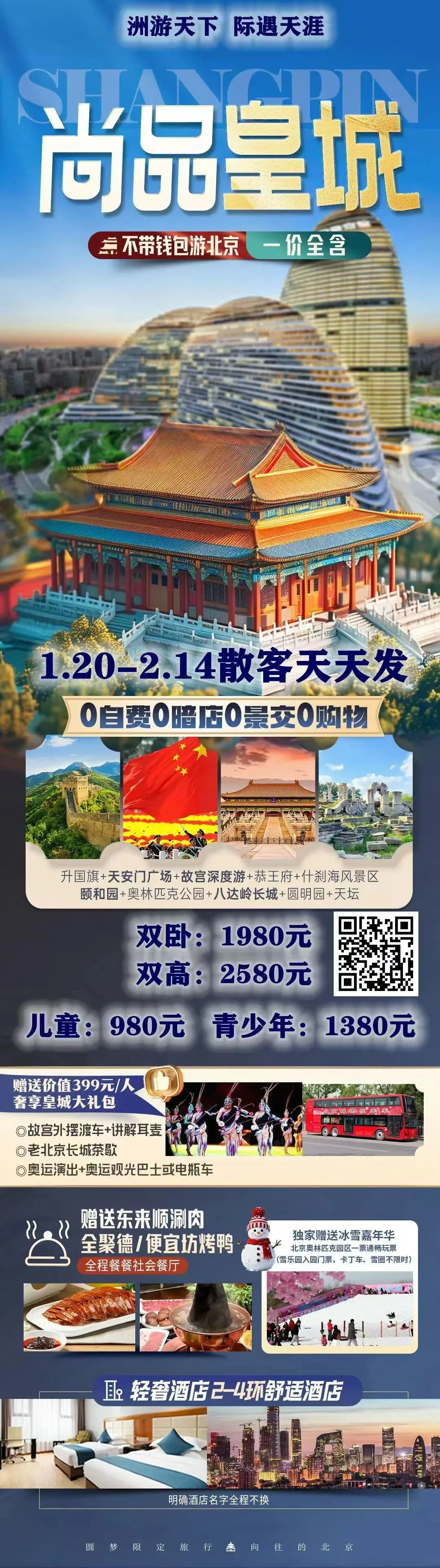 二、【尚品皇城】不带钱包纯玩游双卧北京五日游1980元