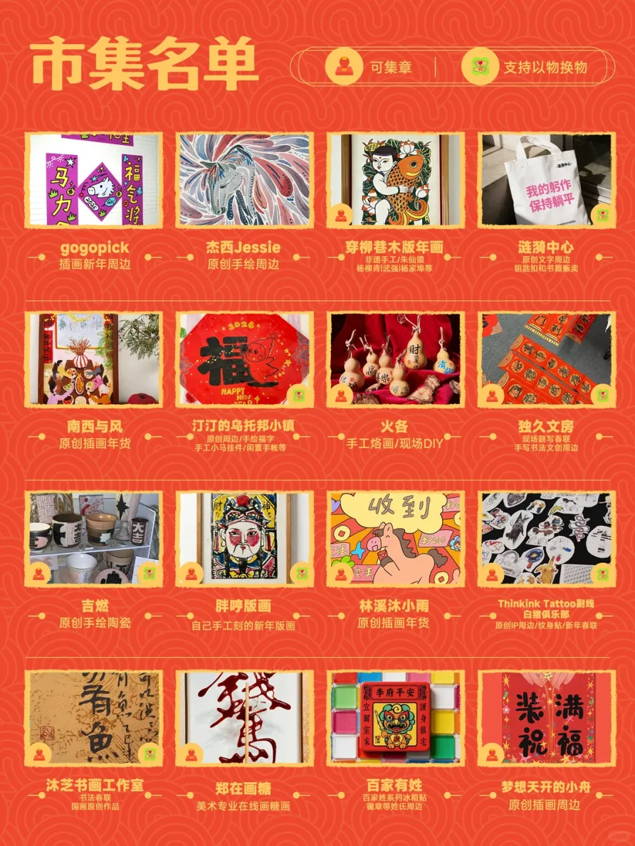 文创泥塑、冰糖葫芦、捏面人红包、非遗拓印、创意周边.....