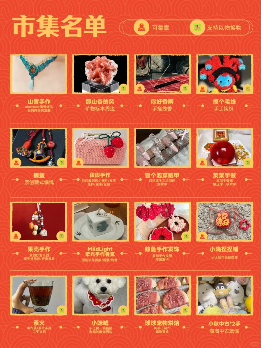 1楼市集开盲盒+2楼循环商店副本;钩织发圈×藏式编绳×马年宋锦、9.9起淘一手样品/二手好物