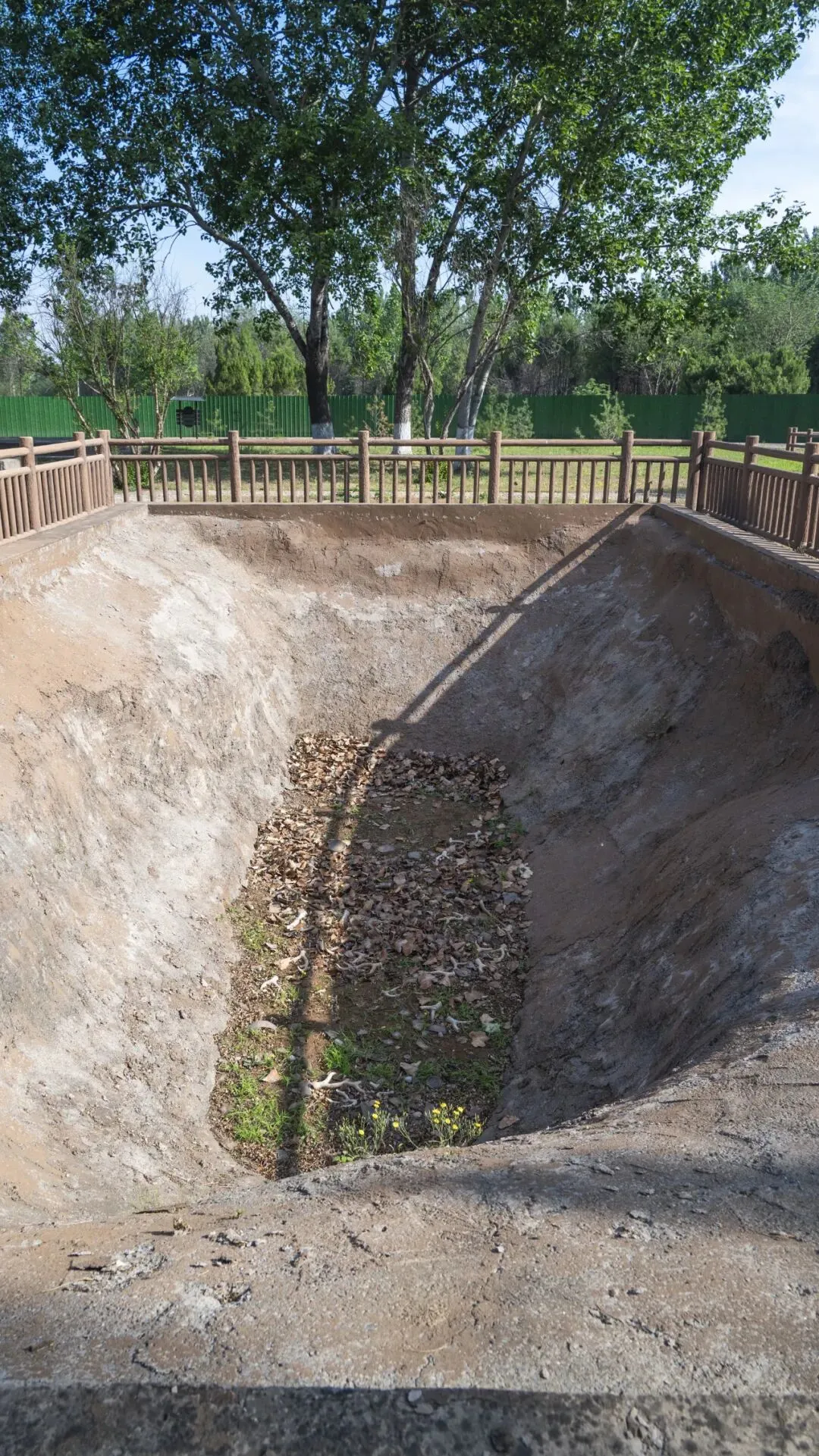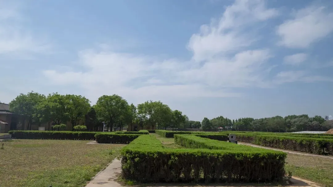 以极快的速度通览宫殿宗庙区的重要点位后,将将赶上九点半的首班接驳车前往出土后母戊鼎等文物的王陵区。接驳车单程运行时间大约15分钟,返程发车时间在10:15,要想跟车返回也就意味着游览时间需要控制在半个小时内。王陵区位于洹河北岸的武官村北,分布着多座“亚”字形(甲骨文字形)、“中”字形和“甲”字形大墓,三种墓葬的墓道数量依次为4、2、1,等级也依次降低,卫星图上可以清晰看到回填后沿墓道位置种植的灌木勾勒出的轮廓。王陵区西半部分的考古工作还在进行中,只在东南角有三个展厅,分别为车马坑、考古展示和M260号墓葬,游览起来半个小时的时长可以说比较充分。