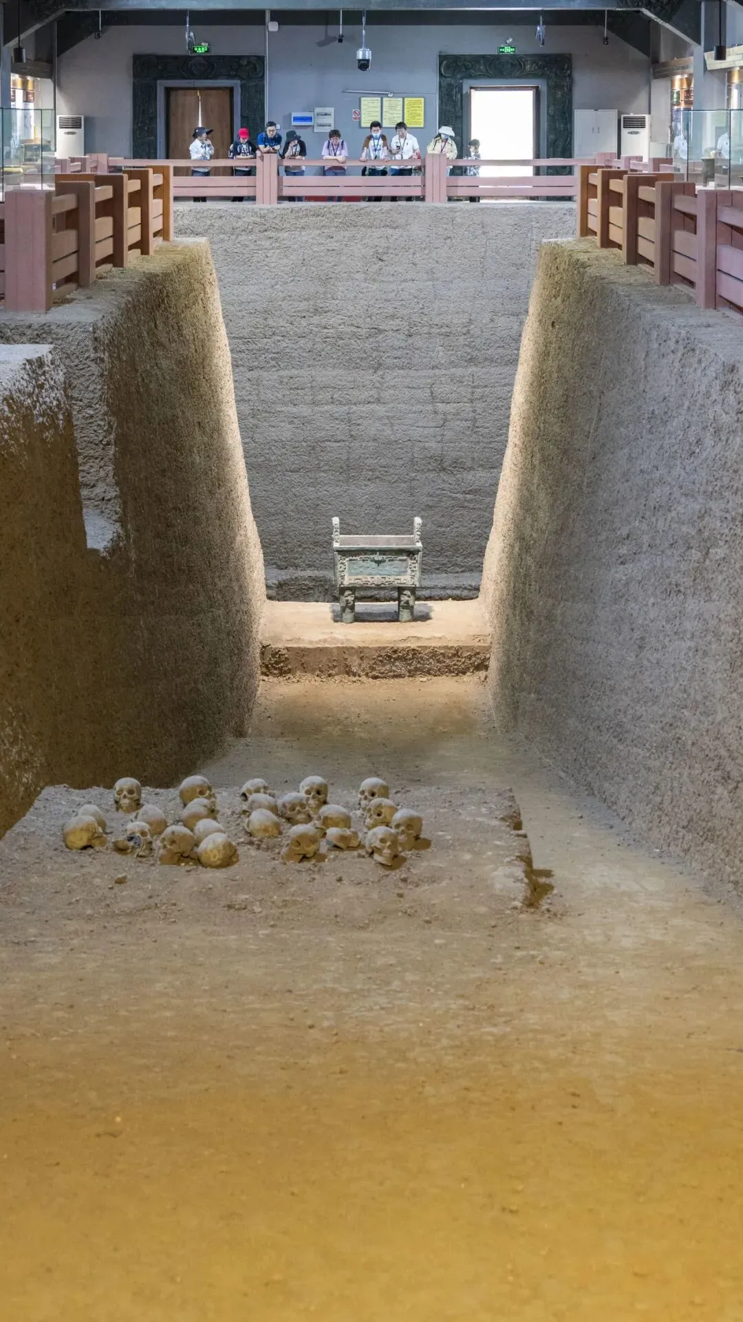 2006年,殷墟被列入世界遗产名录,道口以北不远有一纪念碑记述此事。目前,殷墟景区共分三个区域,即洹河(安阳河)河湾内小屯村一带的宫殿宗庙遗址区、北岸的王陵区和东岸的殷墟博物馆,三地间有接驳车运行,遗址区和博物馆间还有接驳渡船,建议购买联票。作为第一批全国重点文物保护单位和5A级景区,殷墟大约是几乎全部游客来安阳的首要目的地,卡着开园时间进门很有必要,特别是在小长假期间。宫殿宗庙遗址区大多数遗迹在考古发掘后进行了回填,建筑基址分为甲、乙、丙组,其中甲组与乙组大致对应“前朝后寝、左祖右社”格局中的“后寝”与“前朝”,当初挖出的柱础被红色柱状物所替代,注视着柱础位置示意和基础范围,可以想见三千年前晚商都邑的宏大规模。1987年,当地在东西长达51米的乙十二基址西段约30米已完成考古工作的部分上依据考古资料及文献资料按“茅茨土阶,四阿重屋”的形制进行了复原工作,落成后的大殿成为今日宫殿宗庙遗址区的主要建筑物。建筑基址附近还存在着古人倾倒垃圾的灰坑和一定数量的祭祀坑、车马坑,以人殉奠基的现象在那时已经出现。