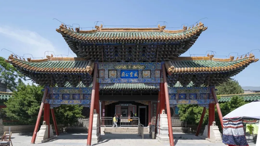 从天宁寺塔向东南进入老城狭窄的小巷中,七拐八绕之后,彰德府城隍庙低调的门头终于显露真容。彰德府城隍庙现存的建筑格局基本保留了明洪武二年(1369年)因城隍受封"威灵公"而进行扩建后的规模,是华北地区保存最完整的城隍庙之一,共有五进院落,木牌楼与山门内,跨过泮池,前殿、拜殿、大殿、寝殿及后殿五座大殿层层递进,硬山顶、悬山顶、歇山顶各有千秋。作为当地城隍信仰的实体依托,彰德府城隍庙的价值不仅在于建筑本身,还有其上赋存的民俗文化属性,事实上,这里还有另一重身份:安阳民俗博物馆。