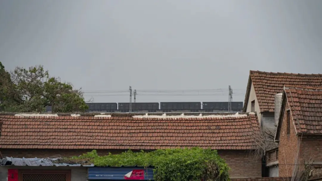 惠明寺北侧的申村民居与瓦日铁路。瓦日铁路自山西瓦塘经河南至山东日照港,是重要的晋煤外运通道。