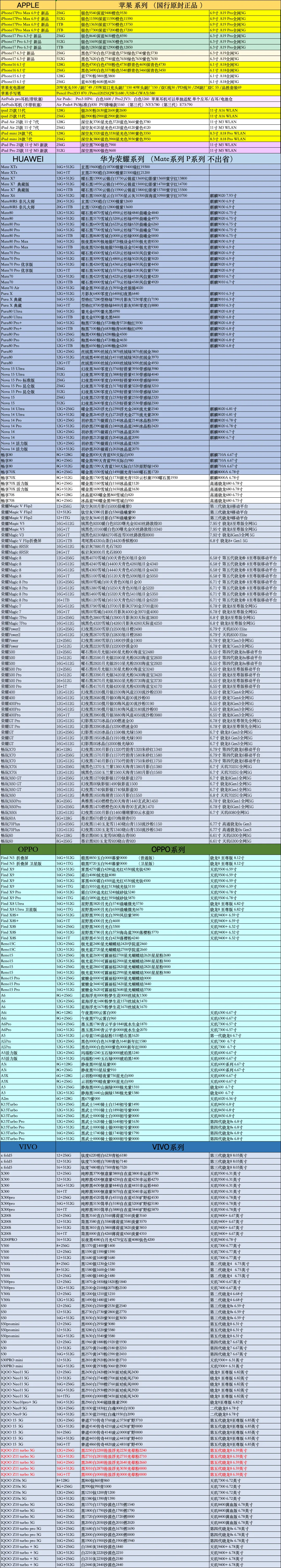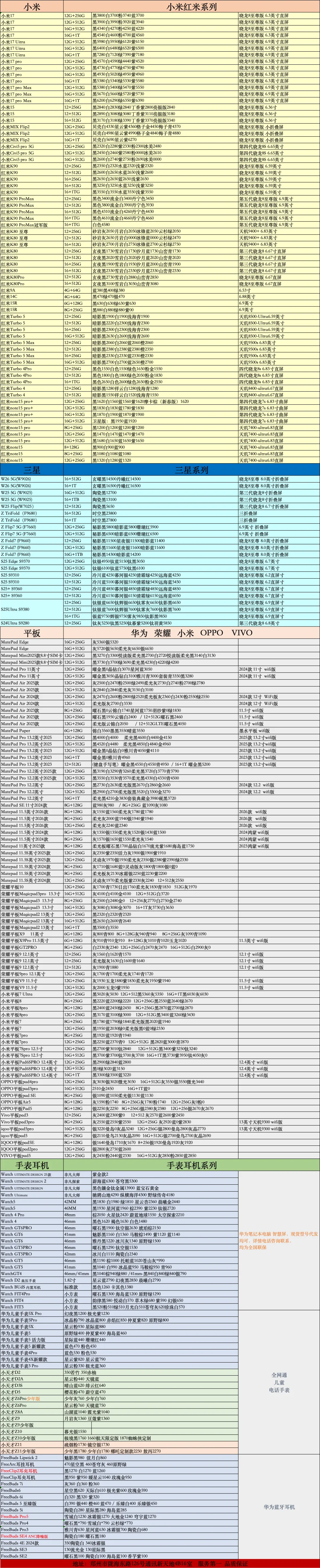 郑州明和手机报价单2.3 已更新