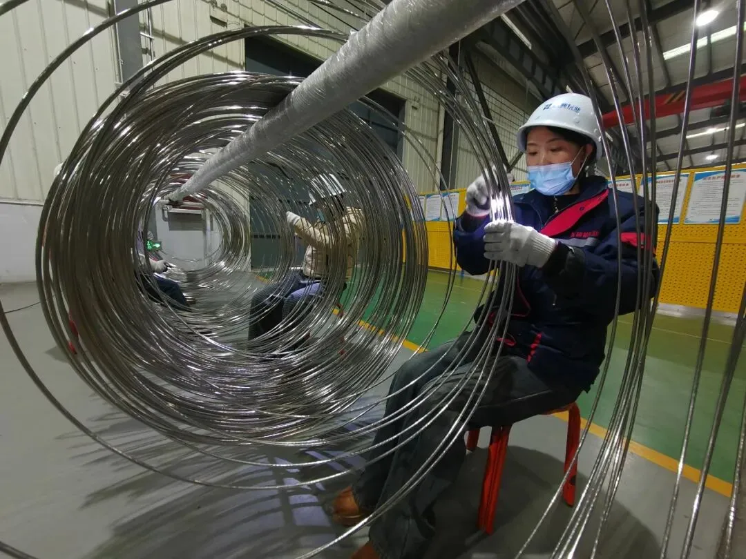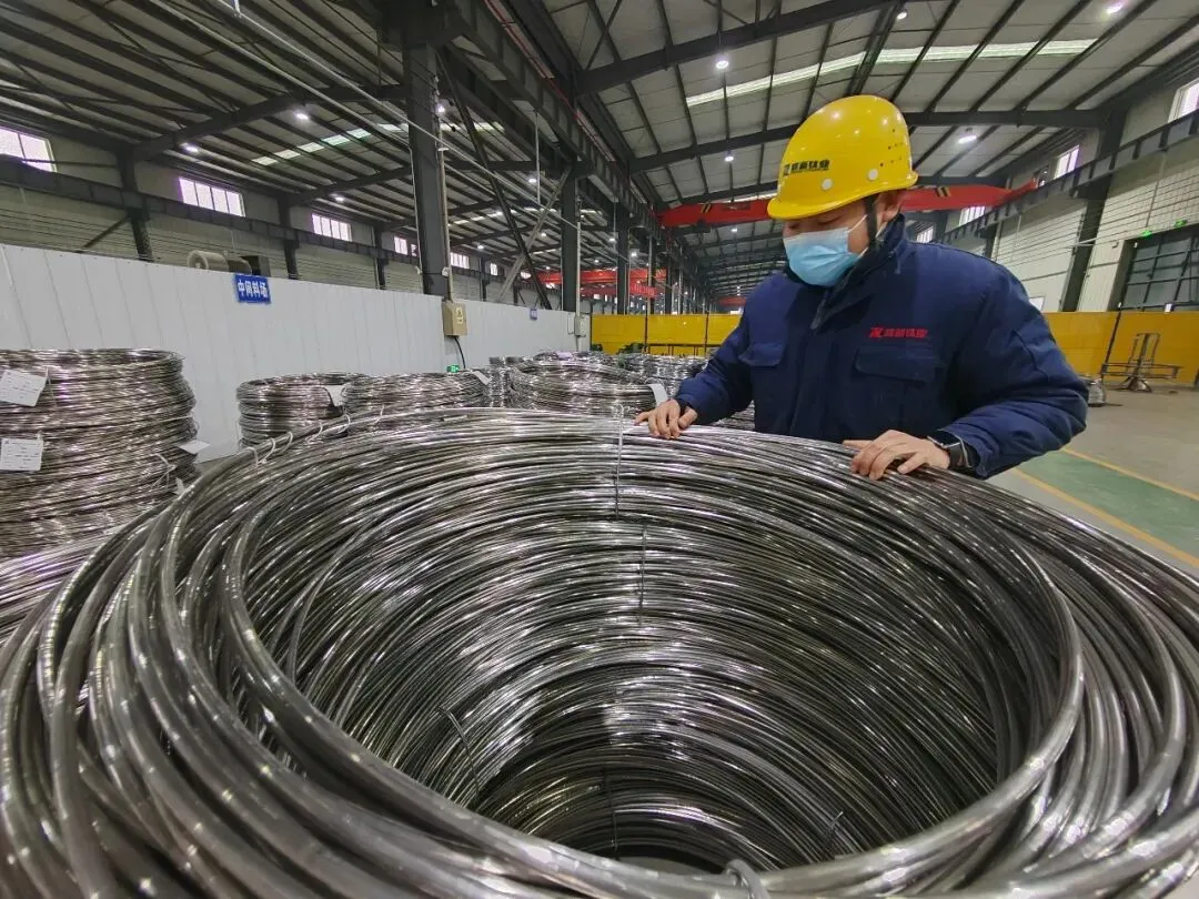 在退火环节,创新高纯度惰性气体保护在线连续退火系统,杜绝了氧化皮生成;在清洗环节,引入超声波清洗工艺,不仅效率提升约30%,而且全程零污染……创新工艺加持下,企业产品竞争力持续跃升,去年在国内高端钛合金丝材市场占有率达到约1/6,位居第一。