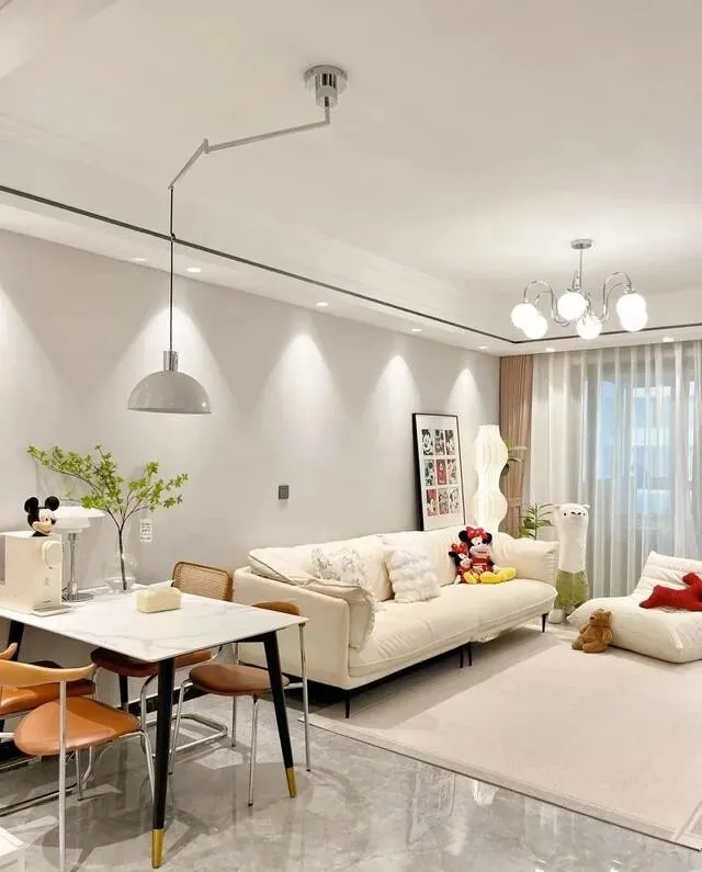 今天这套郑州的案例 , 真的让我眼前一亮 , 纯南户型 , 客餐厅加起来6.5米长、3.2米宽 , 布置得温馨又高级 , 关键是 , 人家全程自己搞定的 , 省钱还出效果~