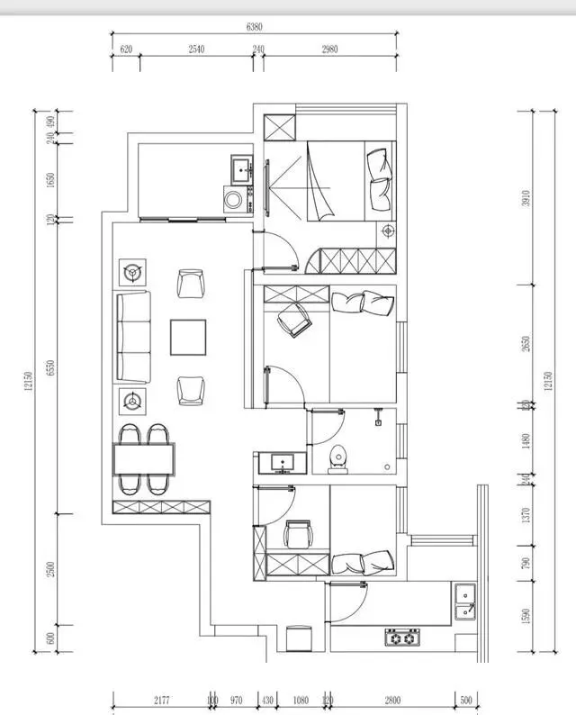 89平三室 , 除了入户做了点拆改 , 其他基本没动 , 照着装问题不大。