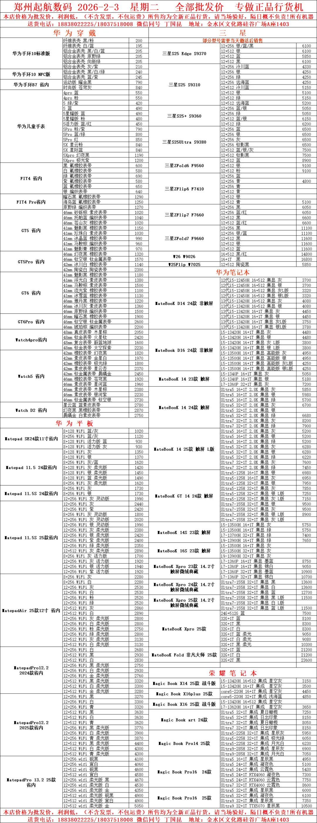 每天手机最新行情 请关注微信每日推送微信公众号:郑州起航数码公司地址:郑州市金水区文化路82号硅谷广场A座1403