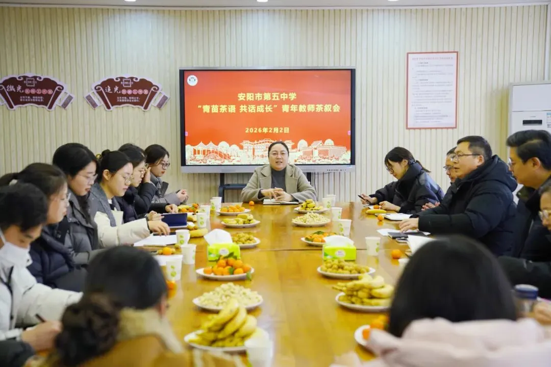 学期末,安阳市第五中学举办“青苗茶语 共话成长”青年教师茶叙会。活动采取分时段、小范围形式开展,近50名青年教师与校领导、专家面对面交流。