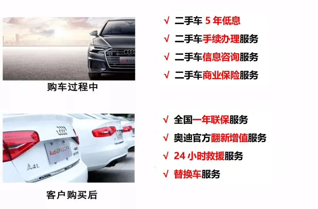 优质车源领导者是本店服务的定位,主要服务项目有全品牌二手车销售、收购、置换、寄售、个性化购车定制、魔术翻新、微创修复、维修保养、免费评估等服务。所销售车型均享一年质保、最长60期贷款、让想买二手车的人敢买二手车,是我们服务的宗旨。