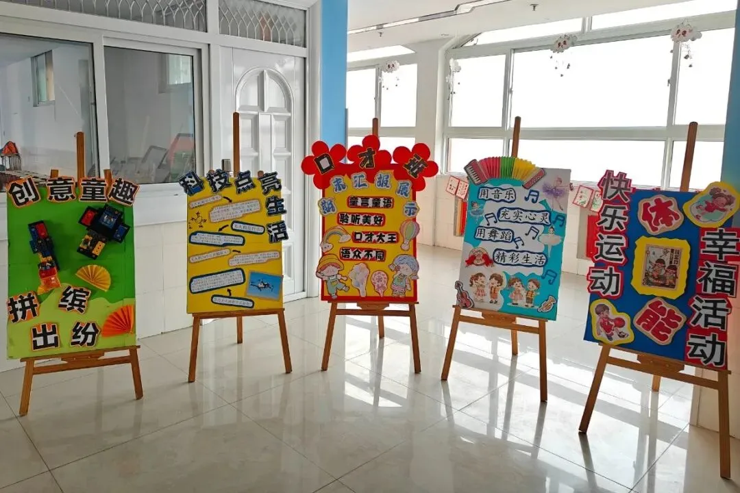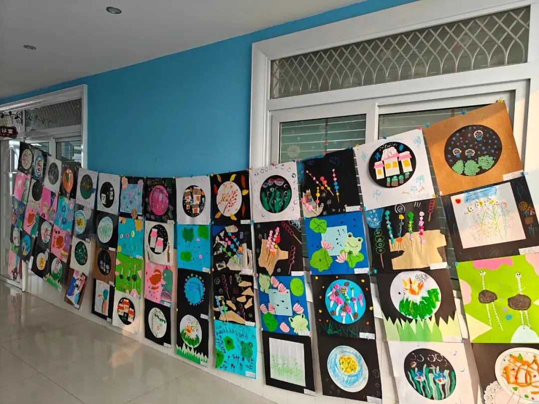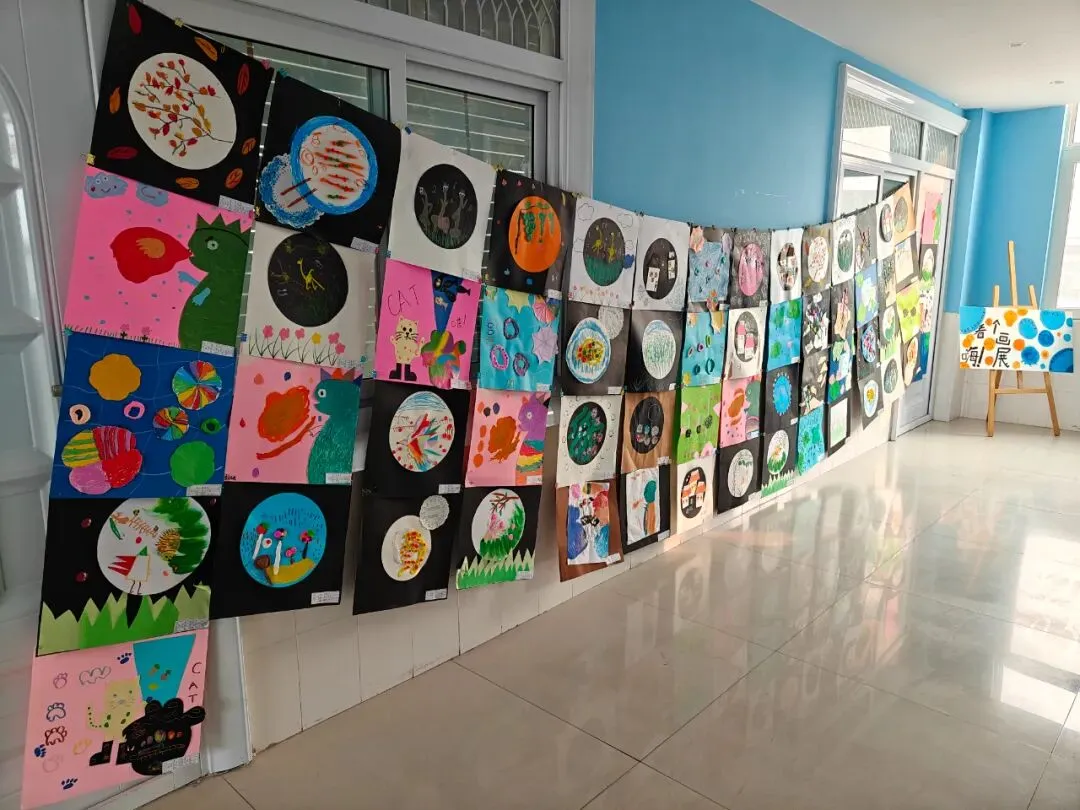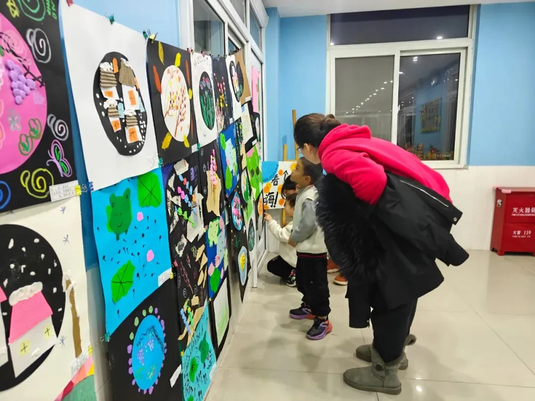 三楼走廊变身“小小艺术馆”,陈列着孩子们一学期以来的课程作品:绘画、手工、建构作品……琳琅满目,创意无限。